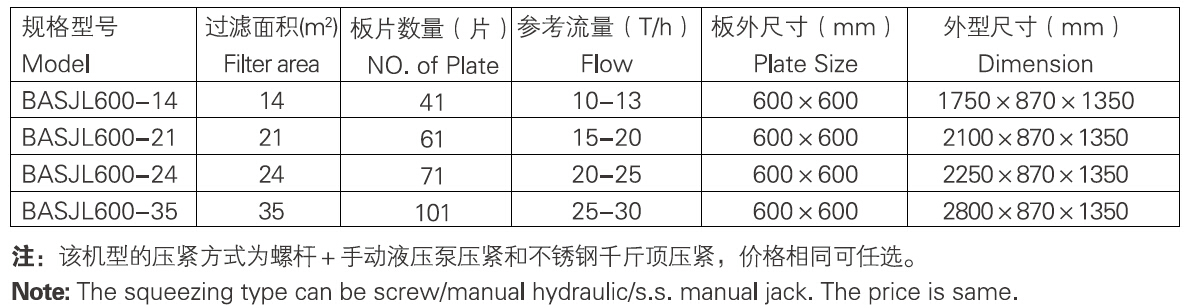 BASJL 600型系列技術(shù)參數(shù)